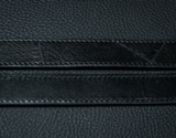 非常にシンプルでオーソドックスなオールブラックストラップ。幅は20mmという絶妙な太さ。長さは110cmになります。標準ではあて革はつきませんがオプションであて革付きも選択可能です。表革にはイタリアバダラッシカルロ社のアキャブ。アキャブは革の表面にランダムに傷を付けた素材。シンプルなデザインが素材のワイルドな表情を引き立てます。裏面にはコラボモデル限定の特別な素材クリスペルカーフを使用しています。ドイツペリンガー社のクリスペルカーフは非常にキメの細かいシボとしっとりした質感が特徴の非常に上品な素材です。クロム鞣しの皮革ですので色写りしません。※1 エイジングしないと言われるクロム鞣しですがクリスペルカーフは例外的に素晴らしいエイジングをするとされています。直接肌に触れる裏革だからこそ上質な素材にこだわりました。