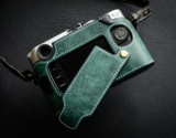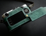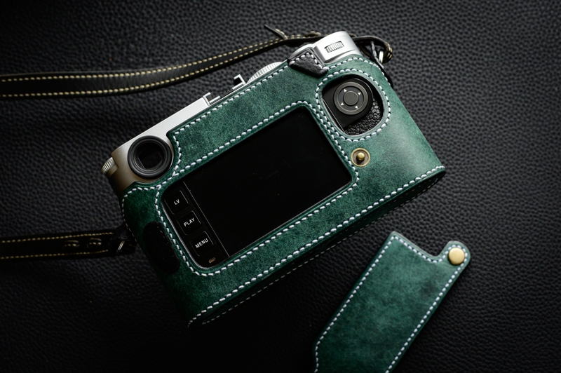 底蓋を外してケースを装着する事によりケース装着したままバッテリーとカードの取り出しが可能なライカM10専用の本革速写ケースです。イタリアのバダラッシカルロ社のプエブロをメインマテリアルに使用、グリップの一部はバダラッシカルロ社のミネルバボックスを使い総手縫いで製作しています。このサンプルはプエブロのペトローリオ、グリップはネロ(黒)、ステッチはビニモナチュラルでの製作です。