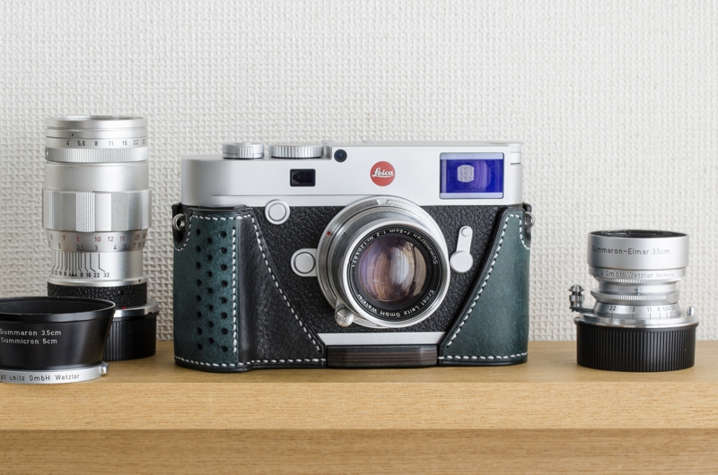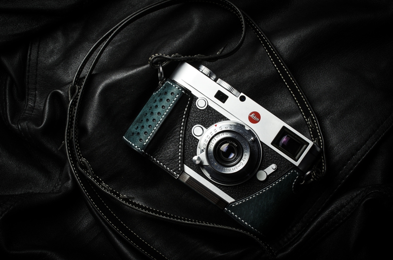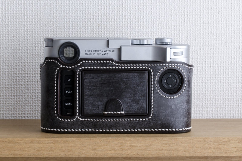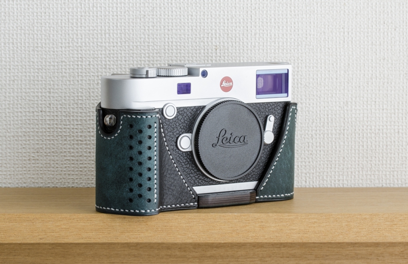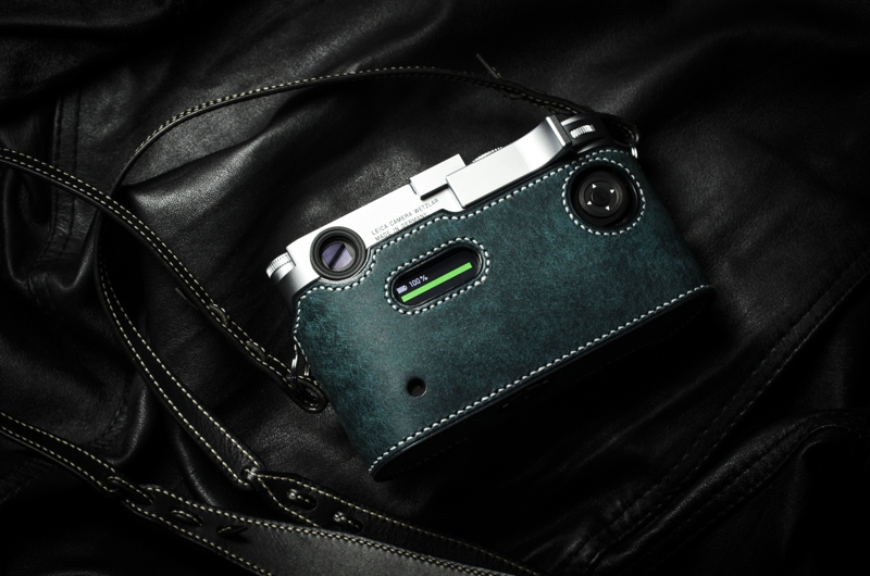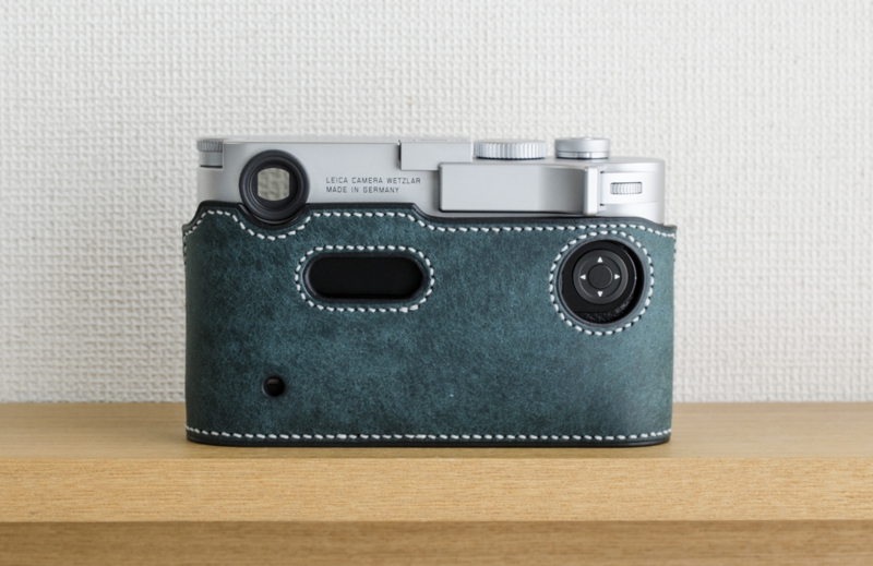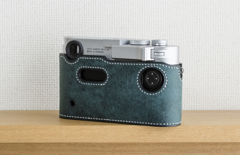 ライカM10専用の本革速写ケースです。イタリアのバダラッシカルロ社のプエブロのペトローリオをメインマテリアルに使用、内装も同じくバダラッシカルロ社のミネルバボックスを贅沢に使い総手縫いで製作しています。内装はネロ(黒)、ステッチはホワイトでの製作です。