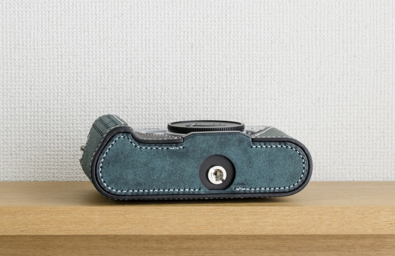 このケースは8mm厚の芯材を使ったグリップタイプ。従来より薄くなったライカM10のボディをしっかり保持する事が出来ます。付属の三脚穴付きの底ネジで固定する事でケースを装着したままでの三脚使用に対応します。付属のネジの他に市販のハンドル付きネジを使用する事も出来ます。