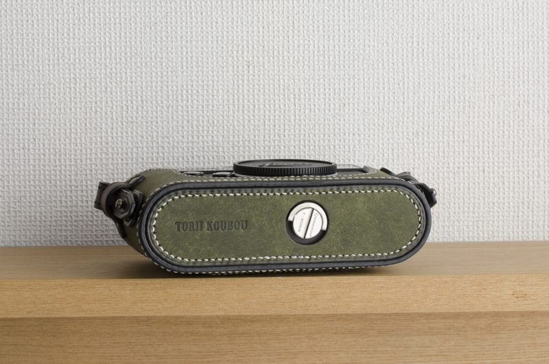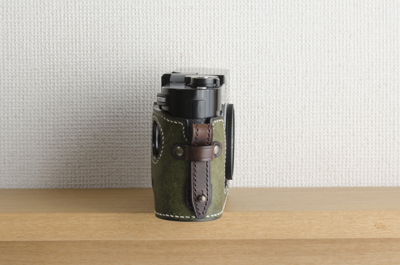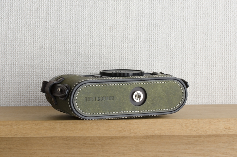 このケースはボディを背面までしっかり保護するフルカバータイプ。ケースにストラップを直接装着する昔ながらの速写ケースのスタイルになります。付属の三脚穴付きの底ネジで固定する事でケースを装着したままでの三脚使用に対応します。付属のネジの他に市販のハンドル付きネジを使用する事も出来ます。装着ストラップは当工房のQueストラップをおすすめしますが先端がテープタイプのストラップとあて革のない二重リングタイプのストラップであればご使用可能です。ケースとストラップの取り外しが簡単ですので気分に合わせてストラップを使い分けたり普段はストラップを外しておきたい方に最適です。このケースはショルダーストラップの使用を前提としたケースになります。ハンドストラップも装着出来ますが長時間片釣りするような使い方は想定しておりませんので予めご了承下さい。
